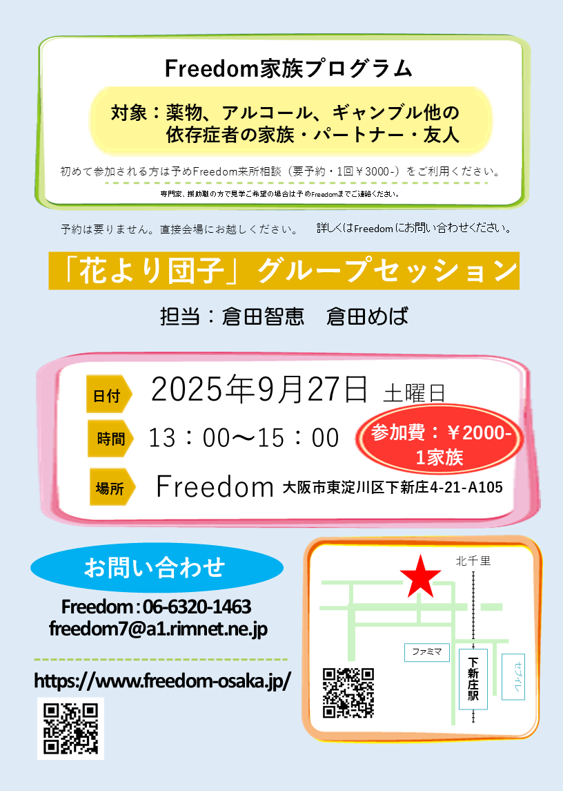 Freeedom家族プログラム「花より団子」2025年9月公開済み: 2025年9月26日更新: 2025年9月26日カテゴリー: 家族プログラム共有:TwitterFacebook新着記事 Freeedom家族プログラム「花より団子」2025年9月 Freeedom家族プログラム「花より団子」2025年8月 Freeedom家族プログラム「花より団子」2025年7月